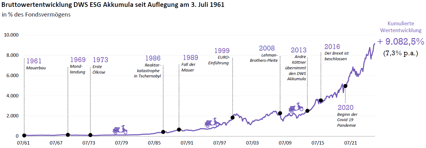 Der DWS ESG Akkumula LC kombiniert erfolgreich die Erfahrung eines aktiven Managements, ESG-Integration, eine flexible Anlagestrategie und eine gezielte Titelauswahl. Dies macht ihn zu einem besonderen, langfristig erfolgreichen Fonds, der sich über Jahrzehnte hinweg bewährt hat und sich von passiven ETFs oder Standard-Aktienfonds klar abhebt.